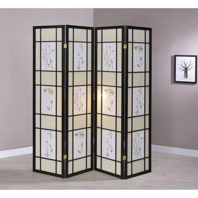 The Herbal Floral room divider is a light, airy floor screen, decorated with images of herbs and flowers. An elegant way to incorporate nature into your home or office decor. Three panel folding Black Shoji screen is great for splitting up a room or added privacy. Choose from 3 to 4 panels and several color options for your personal display preference. Fold and adjust to achieve the most attractive look for your room.