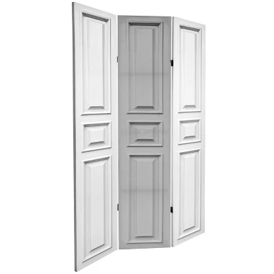 The beautiful moulding on this vintage white door screen adds architectural interest wherever you choose to place the room divider. The neutral color fits in with any decor, but is anything but basic thanks to the design. The same image appears on both sides, so this is a great choice for dividing a large space.