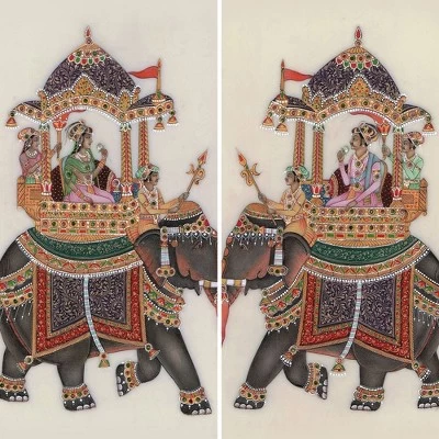 6″ Double Sided Raja's Elephant Canvas Room Divider – Oriental Furniture