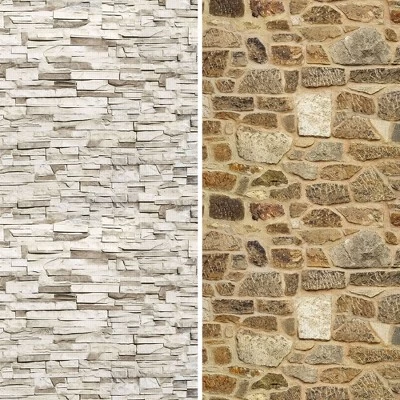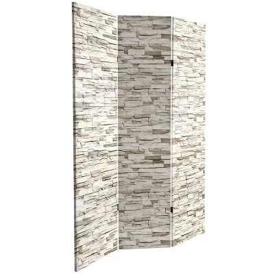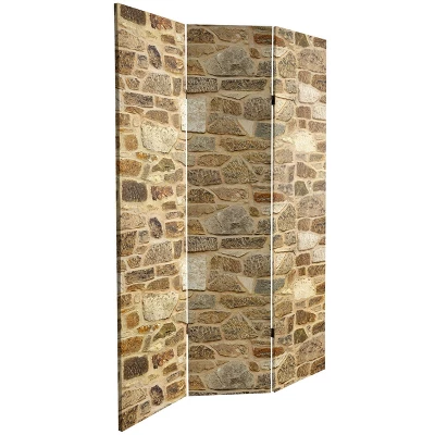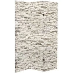 One side of this lovely room divider features a monochromatic stacked stone. The other side is reminiscent of old stone foundations. Either one is a perfect decorative accent for the discerning eye. A perfect way to divide a space, add a backdrop to your Zoom meetings, or add a colorful accent to your home.