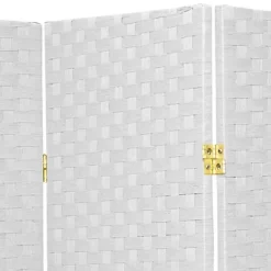 Bring an instant update to your space with the classic look of the 6 ft. Tall Woven Fiber Room Divider in White (5 Panels) from Oriental Furniture. This five-panel room divider is the perfect solution whether you want to separate your bed from your living space in a studio apartment or you want to tuck away a reading corner. With the hardwood and metal construction, this screen can be arranged in any configuration you want.