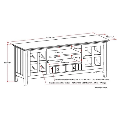 | Dimensions (Overall) | 24 Inches (H) x 60 Inches (W) x 16.5 Inches (D) |