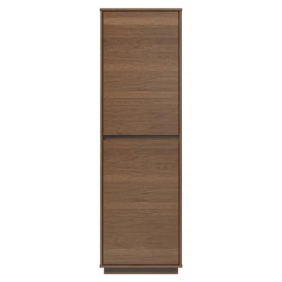 This 2-door midcentury modern bookcase offers adequate storage without any frills or distractions. Constructed of warm walnut stained solid Brazilian jequitiba wood for strength, durability and a beautiful woodgrain, the design leans into simple lines and a minimalist aesthetic. The large doors swing open to reveal 4 adjustable shelves that support up to 22 lbs. Whether you’re arranging your library, storing linens or organizing electronics, this piece offers inconspicuous storage. It brings a buttoned-up look to your home office, living room, dining room or bedroom.