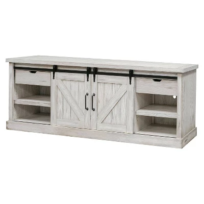 Key West Console Table With Drawers And Shelves Washed Gray – Bush Furniture