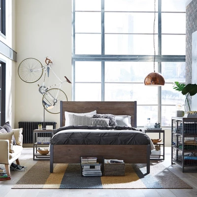 An alluring industrial design using mixed media materials gives this Barnside Nightstand by homestyles a cool vibe. Constructed of wire-brushed acacia veneers over engineered wood in a multi-toned driftwood finish with metal tube framing in a powder-coated, dark gray painted finish. Features three impressive shelves, with the middle shelf being adjustable. This nightstand may also be used as a living room end table. Comes carefully packaged with all items labeled and coordinating easy-to-follow assembly directions. Measures 24″H x 20″W x 16″D.