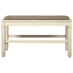 - Includes counter-height table and 4 upholstered bar stools