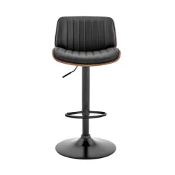 Brock Adjustable Counter Height Barstool With Faux Leather Seat Walnut Finish Back Steel Base – Armen Living