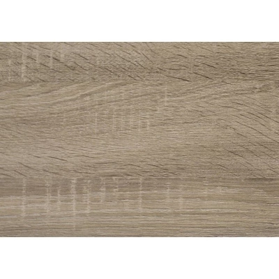 - Finished in an elegant rich dark taupe reclaimed wood-look