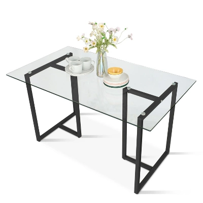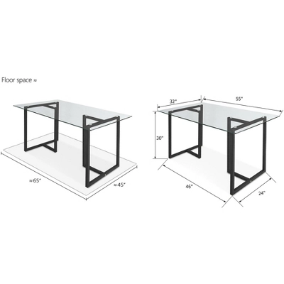 - Glass And Steel: A crisscross support beam brings stability to this clear tempered glass top (Included rounded corners to protect you and your family) and metal writing desk for years of enjoyment.