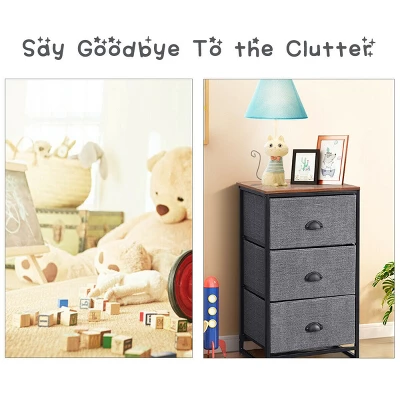 Are you still upset about the messy things? This drawer storage unit is your ideal option. Our beautiful and powerful 3 tier chest of drawers has a rectangle shape and can make your room full of charm. Made of sturdy and durable steel frame and thick medium density fiberboard, this drawer storage unit is solid enough to serve a long time. This chest of drawer comes with 3 folding fabric bins, which provides plenty storage space for you. It can be used in a variety of situations, whether it’s a bedroom, living room, office, dorm or even a closet, you can place it for storage. Even, you can use it as a coffee table.