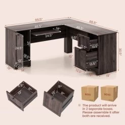 Are you looking for a desk that is both practical and stylish to meet your diverse needs? Well, why not try this one! Designed with a spacious desktop, 2 large drawers, a door cabinet and a slide-out keyboard tray, this L-shaped corner desk offers ample storage space to well organize your office supplies, ideal for any corner of your room, making the most of your limited space, providing you with more studying and working areas. In addition, convenient metal knobs and smooth metal drawer slides make it easy for you to open and close the drawers.Note: large-load items are suggested to be put on the side of tabletop, which provides higher support, better not at the center.