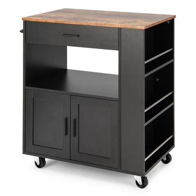 Costway Kitchen Island Cart Rolling Storage Cabinet W/ Drawer & Spice Rack Shelf