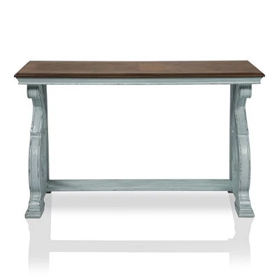 An exceptional sofa table for any living room, this table features beautifully carved details fit for a king or queen. The tabletop is finished in dark oak and contrasts wonderfully with the white wash frame, featuring an ornate design and bold feet. This table serves as a design focal point on its own or you can enjoy adorning it with your own most-loved possessions such as photo frames of loved ones.
