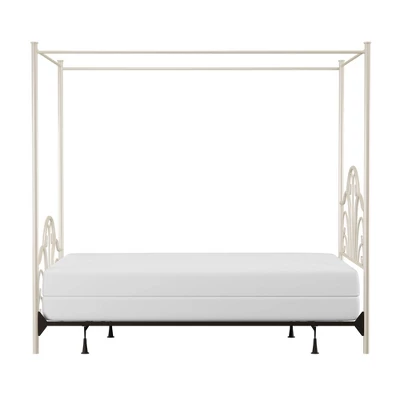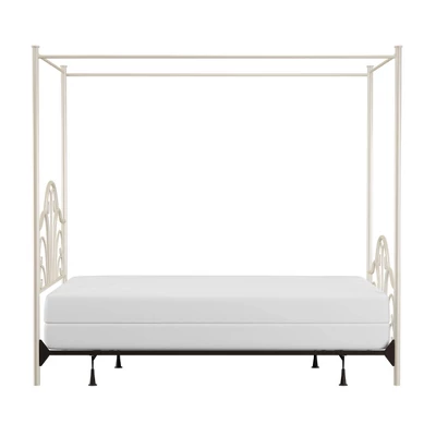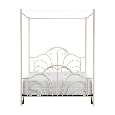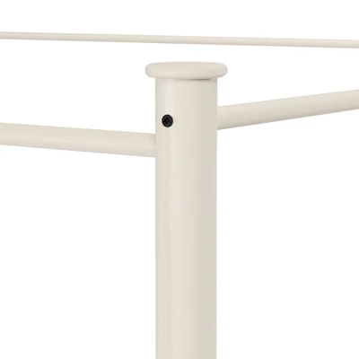 The Dover metal bed is a transitional design that features and exciting scroll design in the headboard and footboard. The bed has a textured cream flat powder finish. Fully welded construction featuring heavy gauge tubing with 1 1/2″ round legs and 1″ round tubing for the headboard and footboard. Headboard is 55″ high, footboard is 45″ high. Includes 6 leg metal bed frame. Requires a mattress and box spring.