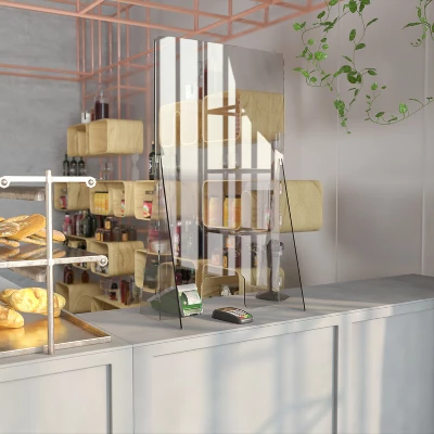 Protect employees who come into contact with customers on a daily basis from bacteria and viruses with this clear acrylic register shield. The sneeze guard protects both employee and customer by preventing the transmission of droplets. A 8.25″W x 8″H opening allows card and cash transactions to be passed through for processing. Protect your business by protecting your employees and customers with a plexiglass barrier for the counter, front desk, grocery store, and customer service locations. The clear counter shield is transparent to help maintain personal interactions for a seamless, enjoyable customer experience. Although simple in design, these register shields mean business to keep you in business. Additional Features: Pass-Through opening for transactions, Ideal for cash registers, front desk clerks, hostess stations, bank tellers and other customer facing jobs, Designed for Use in Customer Facing Locations