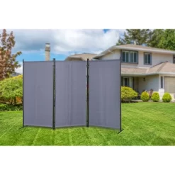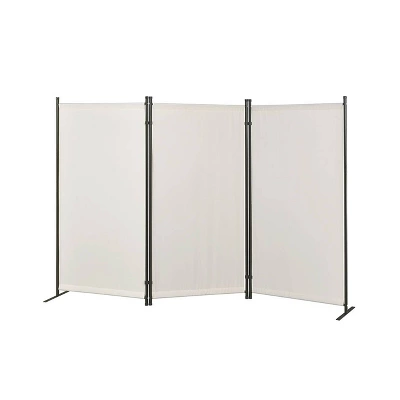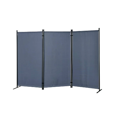 A room divider for both indoor and outdoor. It has a black powder coating heavy duty metal tubing frame build for outdoor as well as indoor. Each panel is made of water resistance fabric for easy cleaning and double hinged conveniently to turn either direction. With 4 different colors for you to choose from, Gray, Beige, Orange and Black. One of these colors will definitely match your funitures and places both indoor and outdoor.