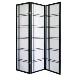 A contemporary version of the classic shoji room divider. Display as an art screen, or for privacy and to define space. Fold in a variety of arrangements to suit your room style. The thick, shoji-inspired rice paper blocks view while still letting light in. Create a dining room, or instantly make a reading area in a corner. However you use it, this stylish 3-panel divider is an easy solution to your making the most out of your living space. Available in cherry, black and natural finishes.