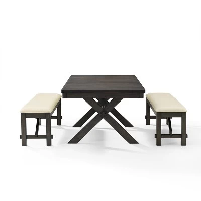 Sure to be the focal point of your modern farmhouse decor, the Hayden 3pc Dining Set brings rustic style to family gatherings. This set features a table with an 18” extension leaf that expands to comfortably accommodate up to six diners. The X-shaped legs of the table complement the simple design of the dining bench, making the Hayden 3pc Dining Set a timeless centerpiece for your dining room.