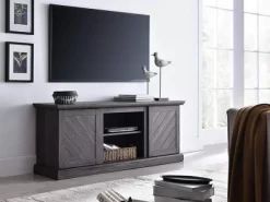 The Walden Media Console is perfect for your family room, bedroom or media room. Offering a distinctive take on rustic wood craftsmanship, this charming tv stand features plank style doors and a unique weathered gray finish. Capable of holding flat screen TVs up to 47″ in size, you’ll be able to create the ideal home theater for watching your favorite programs or movies. With both open and concealed storage space, there’s more than enough space for all of your electronics, components, and accessories. Integrated cord management channels keep all your wires hidden.