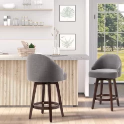 HOMCOM Bar Stools Set Of 4, Swivel Bar Chairs, 25.5″ High Fabric Tufted Breakfast Barstools For Kitchen Counter, Beige