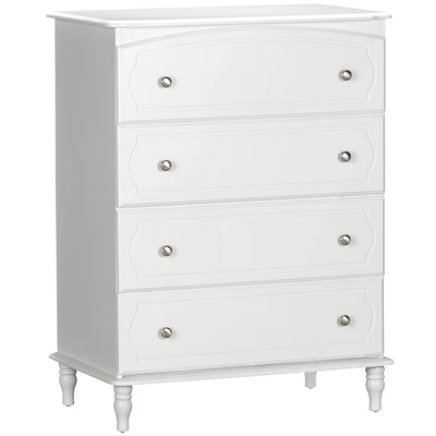 - Two sets of knobs allows you to customize the look of the Dresser and decorative drawer fronts add an elegant style. Store away your child’s extra linens and seasonal clothing along with folded jeans, t-shirts and pajamas in the 4 spacious drawers