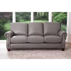 Fulfill the look of any room in your home with this extravagant Logan Leather Sofa. The high density foam cushioning enveloped in dacron give you top of the line comfort. The hardwood frame is kiln-dried to give this armchair added stability. A top-grain leather upholstery, complete with curved arms and nail-head trim, rounds out the look for this irresistible sofa.