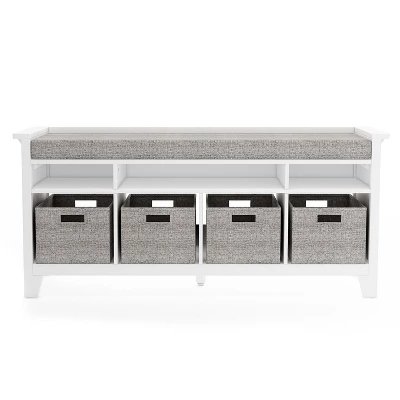 The Martha Stewart Living and Learning Kids’ Collection by Guidecraft creates a bridge between living and learning spaces, pioneering the concept of a child’s home office space. Flexible, organized, and open, the collection is defined by quality materials and uniquely designed storage solutions and workspaces that inspire children to create, collect, and curate. Combine functionality, comfort and durability using the Kids’ Storage Bench. A comfortable, cushioned bench seat provides a place for children to sit as they prepare for the day or unwind from it, helping to create positive associations with daily routines. Shelves and bins provide storage solutions for shoes or toys. This multi-use bench is the perfect practical addition in hallways, mudrooms, foyers or entryways.