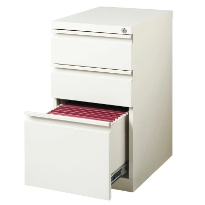 20-inch deep Mobile Pedestal Files with a 3-drawer box-box-file drawer configuration are designed to support the demand of today’s office. Durable, fully assembled steel construction with non-porous surface is easy to clean. These commercial grade mobile pedestals come standard with factory installed hidden casters, full extension drawers, counterweights, and a core-removable lock for security. The file drawer accommodates letter-size hanging files. The ball-bearing suspension ensures a smooth and quiet drawer performance. Extended fronts with full-width drawer pulls provide a sleek and contemporary design. Available in multiple colors to enrich your workspace. 27.75″ height allows these units to roll under most work surfaces. Limited Lifetime Warranty. Unit meets or exceeds ANSI-BIFMA industry standards. Greenguard Gold Certified.