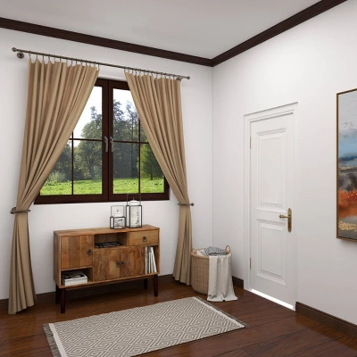 A brown modern wooden sideboard that provides you a perfect storage solution and offers a clean and comfortable living space. Used to store dishes, flat ware, table cloths, or centerpieces, this buffet has all the space you need for your dining room pieces. With a wide top it can be an extra place to serve food and display your favorite photos, memorabilia and more. Single door cabinet measures 12” x 12”, double door cabinet measures 22” x 22”.This item comes shipped in one carton. 9” clearance from ground, 1 top drawer measures 11” x 4” x 12”.Cabinet with drawer, cabinets, and cubbies with modern silhouette, natural movement and hues of the wood is left intact for rustic, natural charm, decorative silver metal ring handles add a unique design element. Suitable for indoor use only. Some assembly required. This accent furniture can support up to 100 lbs. Made in India. Modern design