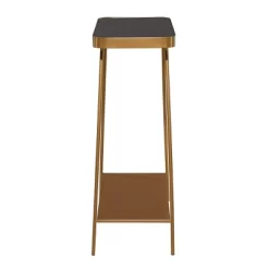 - •Metal bar cart showcases a textured brass finish with black mirror glass