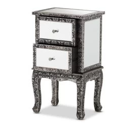 Wycliff Metal And Mirrored Glass 2 Drawer Nightstand Dark Gray/Silver – Baxton Studio