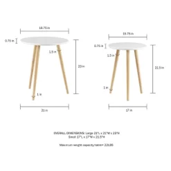 Hastings Home Round End Tables With Woodgrain-Look And Black Metal Base, Gray/Brown, Set Of 3