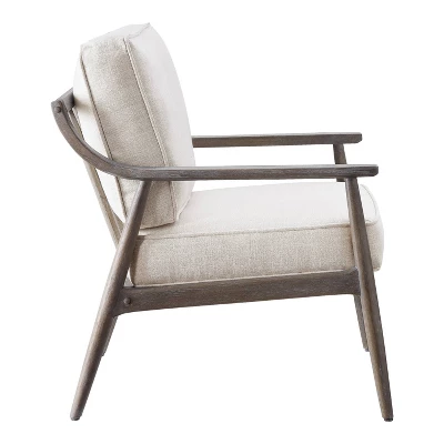 Give your room an instant upgrade with the addition of the Samuel Armchair from OSP Home Furnishingsâ˘. This gorgeous Armchair features Mid-century Modern styling and wears a rustic finish over its solid-wood frame. The chair legs include floor glides. An open-back silhouette and plush cushions give this chair another level of design appeal.