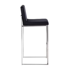 Elegant and modern, the LumiSource Mara Counter Stool has a simple design with gorgeous elements. Featuring a tufted faux leather seat, a solid wood back and graceful stainless steel curved footrest and legs. Great for a kitchen, bar or for extra seating in a break room. This stylish design will fit a variety of decor styles. Sold in sets of two, pick the color that suits your space the best!