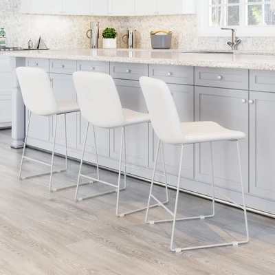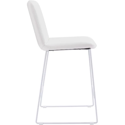 The Lorient Counter Chair has durable vinyl wrapped seat on a powdercoated steel frame. This versatile chair fits any space, any style: a hip modern restaurant, sleek kitchen, or cool hotel bar.