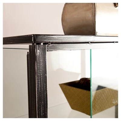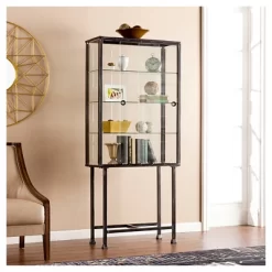 Elegantly display your favorite items with the Aiden Lane Storage Cabinet with Sliding Doors Black. A distressed finish gives your design a hint of rustic flair, while a sleek glass cabinet safely encloses display pieces behind two sliding doors. Add this tall curio cabinet to your living space to show off modern dĂŠcor and family photos, or place in your home office to upgrade your collectibles and souvenirs. Put the finishing touch on your home design with this glass-door display cabinet.