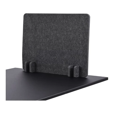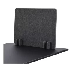 The Stand Up Desk Store ReFocus RAW Freestanding Acoustic Desk Divider makes it easy to create separation in work, education, and retail spaces. It offers a lightweight panel, plus a freestanding design that allows you to simply place it on a desk or table without drilling or modification to the furniture. Made of recycled PET, it offers a sound absorbency rating of 0.85 NRC (85%), is tackable for pinning up photos and documents, and the panel meets UL94-HB flame resistance standards. ReFocus premium-quality separation panels provide cost-effective social distancing barriers for a wide variety of office, educational, medical, and other settings. Available in a choice of attractive shades of gray. Panel and foot material is 60% post-consumer recycled PET. Simple assembly. 5-year limited warranty against defects. Stand Up Desk Store is based in the suburbs of Chicago.