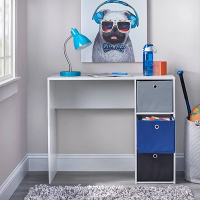 Student Writing Desk With 3 Fabric Bins – Buylateral