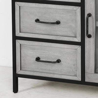 Opt for a stylish and incredibly versatile storage option to your home decor arsenal with the Wood and Metal Cabinet. This storage cabinet has one door and three drawers, ensuring you have ample storage space. This beautiful storage cabinet is finished in mango wood veneer and will thrive in a living room setting. Due to lighting and monitor differences, actual colors and finishes may vary slightly from what appears online.