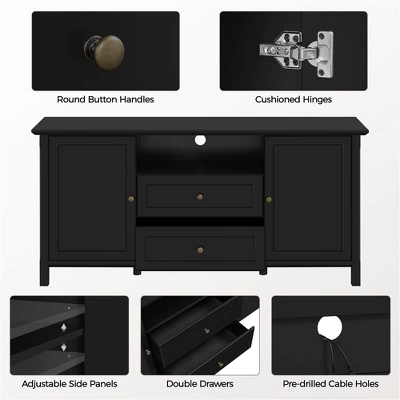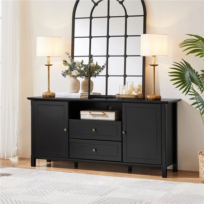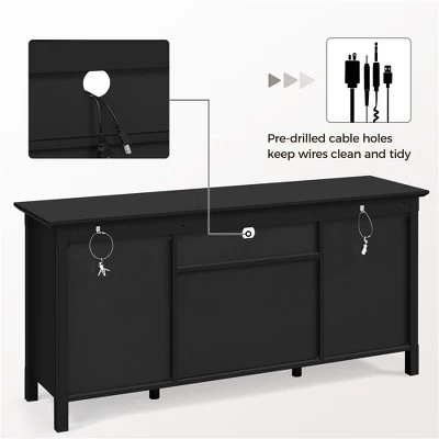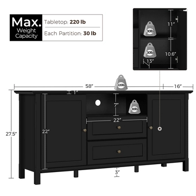- ăGenerous StorageăThe 5 compartments and 2 drawers of this 58âł/ 147 cm long media console break its application boundary. Beyond housing TV, electronics in the living room, its spacious top and storage area make this media console table perfect in other rooms to house lamps, soundboxes, fans, or gather articles